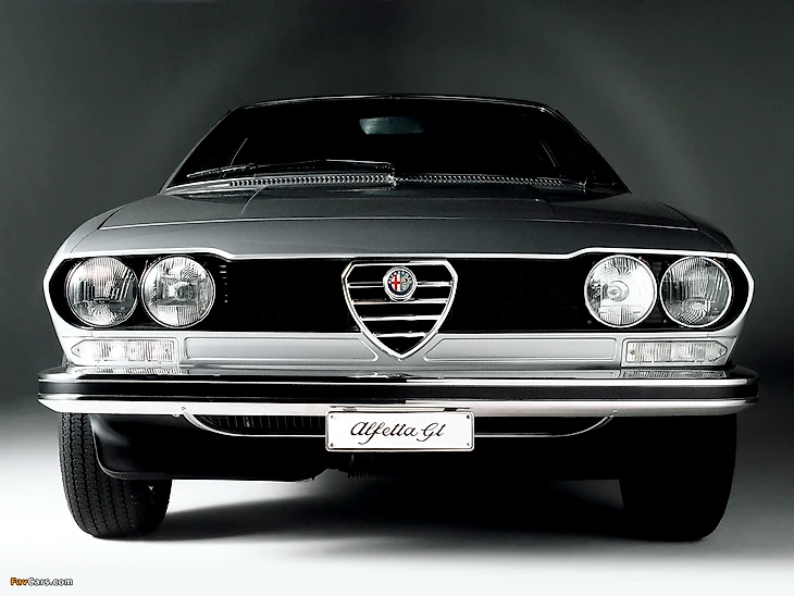 Alfa Romeo GTV являлась фастбэк купе версией обычного седанчика Alfetta – четырехцилиндровый DOHC 1.8 с цепным механизмом и 8-и клапанной головкой блока.