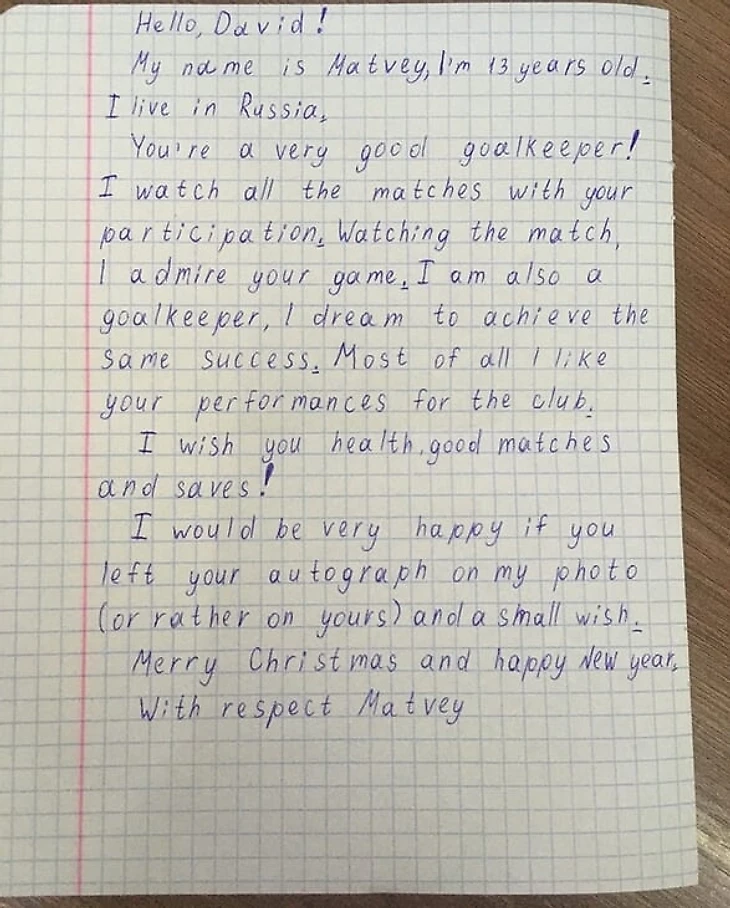 У некоторых английских клубов есть такая традиция: раз в год можно попросить одну официальную карточку с оригинальным автографом. Вот в прошлом году написал в «Манчестер Юнайтед» и попросил автограф Давида Де Хеа.