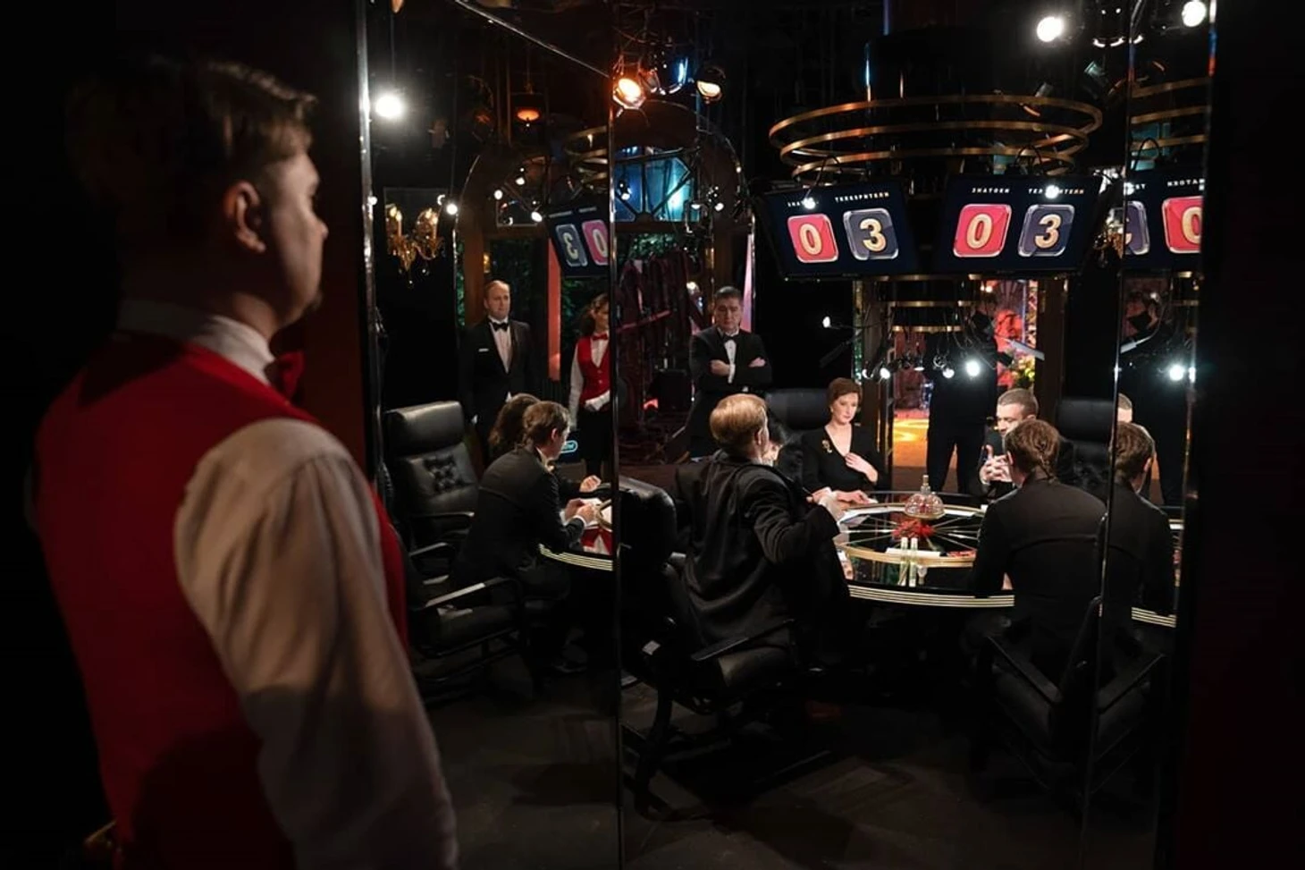 Зал – невероятно маленького размера, не представляю, как туда помещается 100 человек. Еще заметил, что знатоки записывают вопрос в блокнот, а на каждый следующий вырывают листок и бросают под стол. Весь пол под игровым столом – в бумажках.