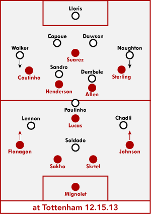 Хендо, Аллен, Стерлинг и Коутиньо - прекрасно сыгранная группа игроков средней линии, вынесшая Тоттенхэм и хорошо выглядевшая против Ман Сити. С заменой Лукаса на Джеррарда центр поля должен состоять именно из вышеназванных игроков.