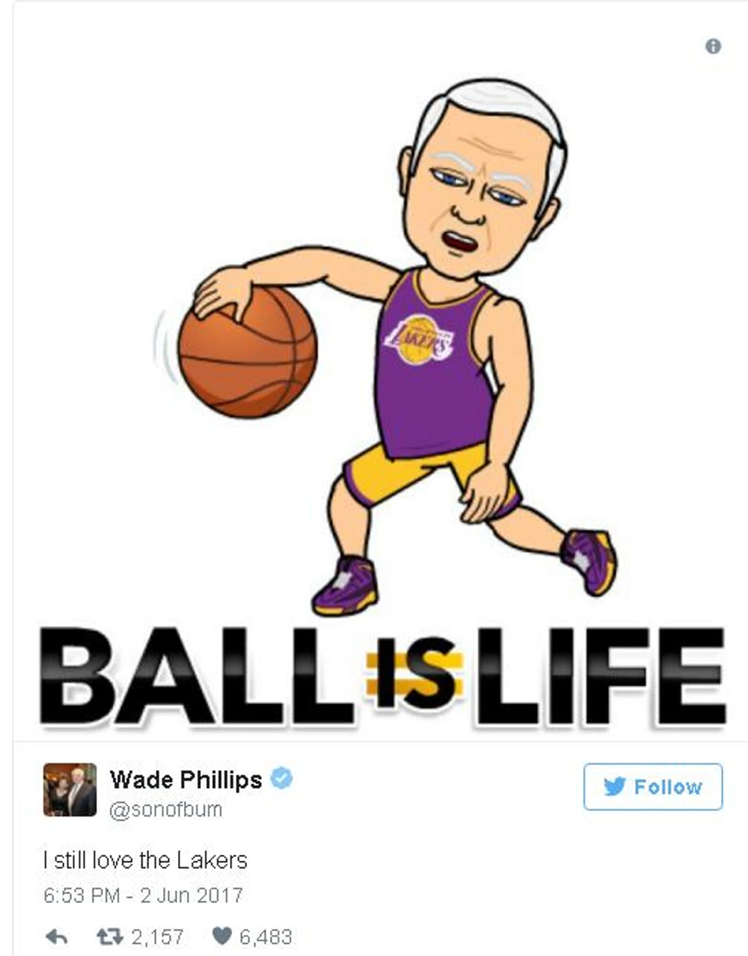 Моя любимая личность в нынешних «Рэмс» это их новый координатор защиты Уэйд Филлипс. Этот человек невероятен. И он не просто «слишком прикольный для футбольного тренера», но и просто очаровательный и классный человек. Если вы все еще не подписаны на него в Твиттере, пожалуйста, сделайте это. Потому что это стоит того.