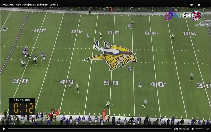 А дальше ОНО. 3-й и 10. Пас на Стефона Диггса. Чудовищный промах ди-бэка Уилльямса. Пустое поле. Тачдаун. «Миннесота» идёт в финал. Любители «Маддена» могут пошутить, что Уилльямс раньше времени нажал на «дайв-захват» и промахнулся. Он хотел просто ударить Диггса сходу, чтобы тот потерял равновесие и упал в поле. Да, захват Диггса в поле давал «Новому Орлеану» победу. Но случилось, что случилось. Чудовищная ошибка новичка в концовке, отличная координация от Диггса и 29:24 победа «Вайкингс».