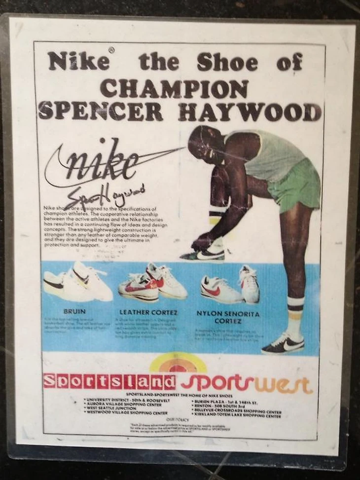 В начале своей карьеры Спенсер Хейвуд получил предложение от Blue Ribbon Sports прорекламировать их кроссовки. Владелец компании сделал ему предложение: 100 тысяч долларов сразу или 10 процентов компании. Агент настоял, чтобы Хейвуд взял деньги сразу.