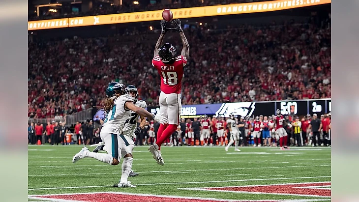 "Атланта Фэлконс"-"Филадельфия Иглз" 24:20.Квотербек хозяев Мэтт Райан заработал 320 ярдов и 3 тачдауна,пропустил 3 перехвата.Ресиверы Хулио Джонс и Калвин Ридли имеют в активе по 106 и 105 ярдов,а также по два и одному занесённому тачдауну соответственно.Квотербек гостей Карсон Вентц заработал 231 ярд и один тачдаун,пропустил один перехват.Ресивер Нельсон Аглохор имеет в активе 107 ярдов и один занесённый тачдаун.