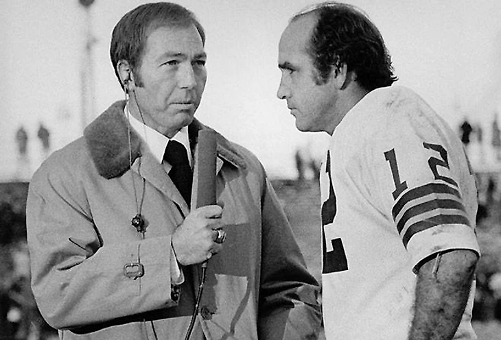Барт Старр, бродкастер CBS, берет интервью у Джона Хадла после прибытия в Грин-Бэй. Фото: Milwaukee Journal