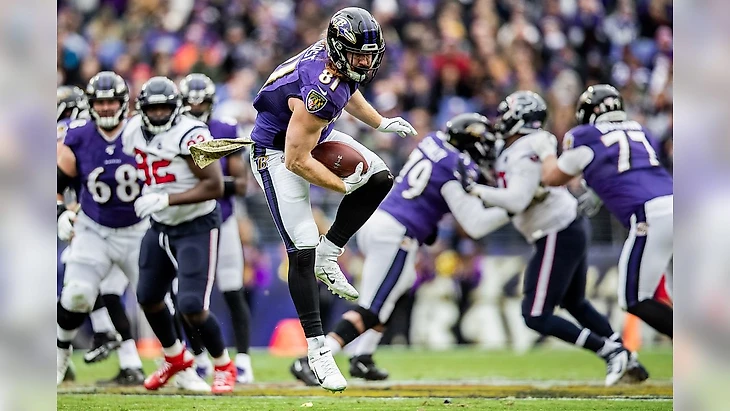 "Балтимор Рэйвенс"-"Хьюстон Тексанс" 41:7.Квотербек Ламар Джексон заработал 222 ярда и 4 тачдауна,раннинбек Гус Эдвардс имеет в активе 112 ярдов и один занесённый тачдаун.Квотербек гостей Дешон Уотсон заработал 169 ярдов и пропустил один перехват."Вороны" выиграли 6 матч подряд.