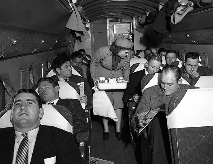 Новичок Пэкерз, халфбэк Хэл Ван Эвери, выбранный в первом раунде драфта, который через два года сам станет пилотом бомбардировщика и уйдёт на фронт, заигрывал со стюардессой Робертой Шильбах. Энд Карл Муллено пытался шутить. А Кларк Хинкл уже обсуждал будущее коммерческих перелётов. Как резюмировал корреспондент: «Самая опасная часть поездки на самолёте – это то время, когда наземный лимузин везёт вас в траффике по главной транспортной магистрали в аэропорт, решили в четверг Упаковщики … не было ни одного игрока, который не хотел бы подняться в воздух снова».