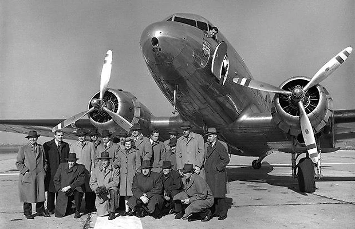 Грин-Бэй Пэкерз у трапа Дуглас ДC-3. 14 ноября 1940 года. Фото: Green Bay Press-Gazette