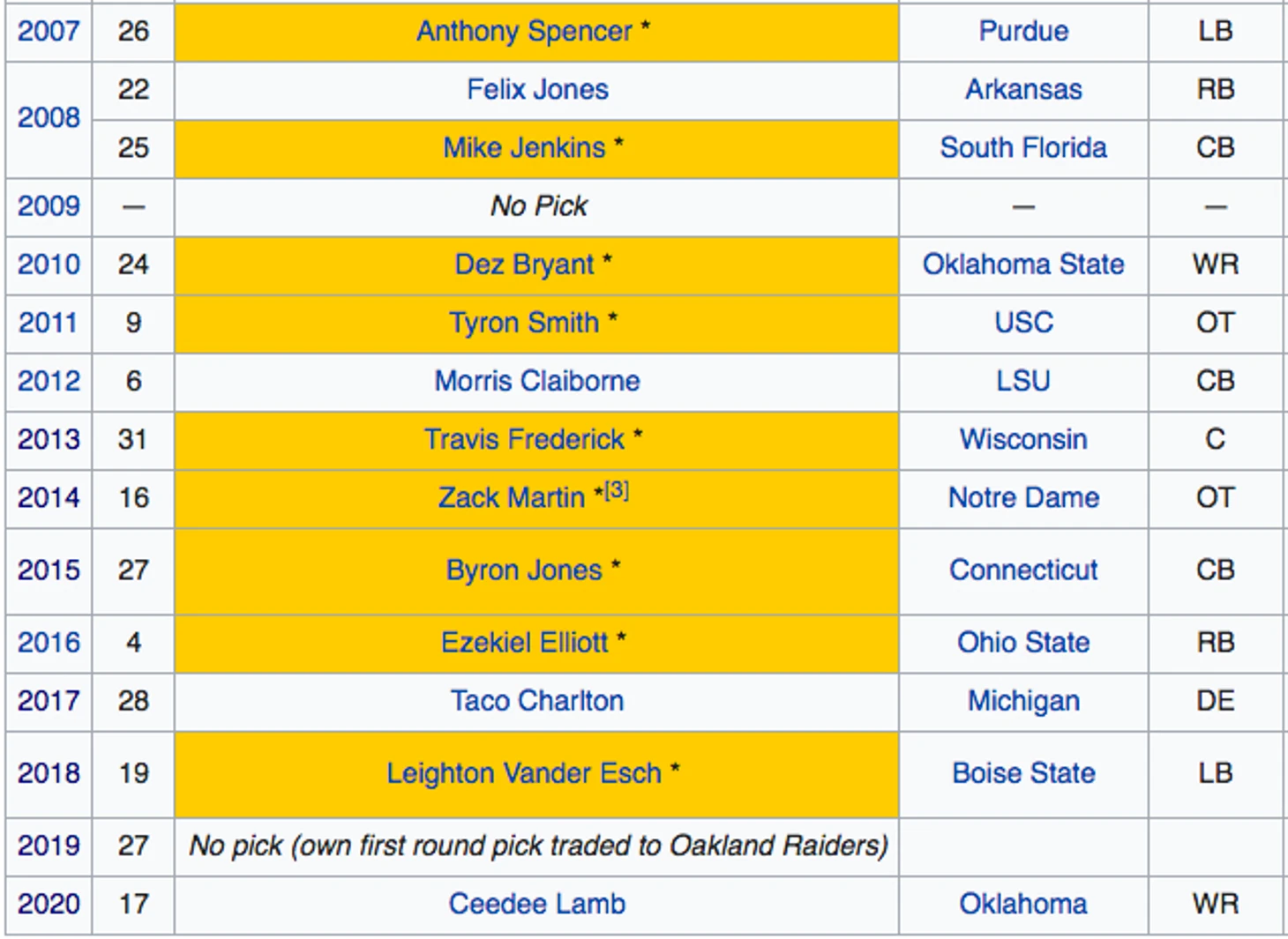 Даже если считать Смита удачным пиком, то хит рейт Райана Пейса в первом раунде составляет всего 25%. И это при том, что все четыре пика были сделаны не просто в первом раунде — они все были очень высокими. Много это или мало решать вам, но вот пример того, как в первом раунде драфтует Джерри Джоунс из «Каубойз»: