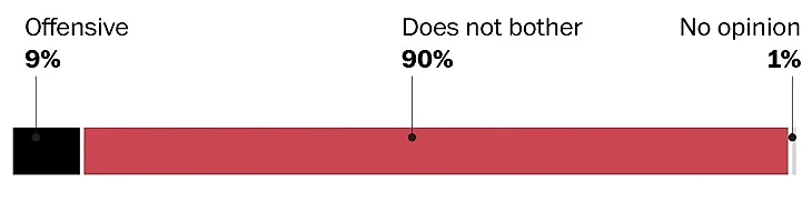 Он показал, что 90% коренных американцев не считают название команды оскорбительным, 9% хотели бы его заменить, а 1% не имеет позиции; 70% не обижаются, когда их зовут краснокожими – даже если говорит человек с другим цветом кожи.