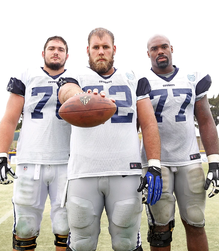 Во-первых, отмечу, что и в их команде были травмированные игроки: где-то один матч пропустил правый тэкл, где-то 3 матча левый тэкл. Раз речь зашла о тэклах, то давайте рассмотрим атакующую линию Далласа в целом. Лаэл Коллинс правый тэкл, Зак Мартин правый гард, Трэвис Фредерик в центре, Тайрон Смит левый тэкл и напоследок левый гард Коннор Уиллиамс. Коннор в данном списке наименее именитый, наименее опытный, да и играл не во всех матчах. Но вот остальные ребята, они если не самые лучшие, то одни из самых лучших на своих позициях. Уж лучше Зака Мартина правого гарда вы не найдете. Играть за такой линией намного легче и спокойней будет любому квотербеку.