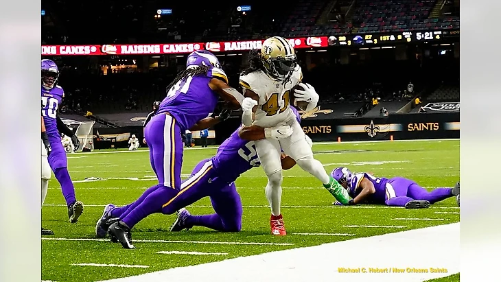 "Нью-Орлеан Сэйнтс"-"Миннесота Викингз" 52:33.Хозяева в последней четверти набрали 21 очко.Квотербек Дрю Брис заработал 311 ярдов и пропустил 2 перехвата,раннинбек Алвин Камара имеет в активе 155 ярдов и 6 занесённых тачдаунов,кикер Уил Лутц реализовал все 7 филд-голов.Квотербек гостей Ник Казинс заработал 291 ярд и 3 тачдауна,кикер Ден Бэйли реализовал 3 филд-гола из 4."Викинги" проиграли 3 игру подряд.