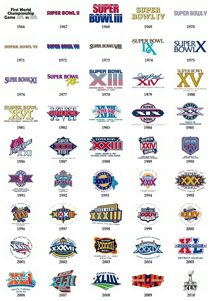 Также представляем вашему вниманию логотипы Супербоулов до 2010 года. Стоит отметить, что начиная с 45 финала дизайнеры не особо заморачивались, и последние 10 лет эмблема столь значимого матча особо не менялась.