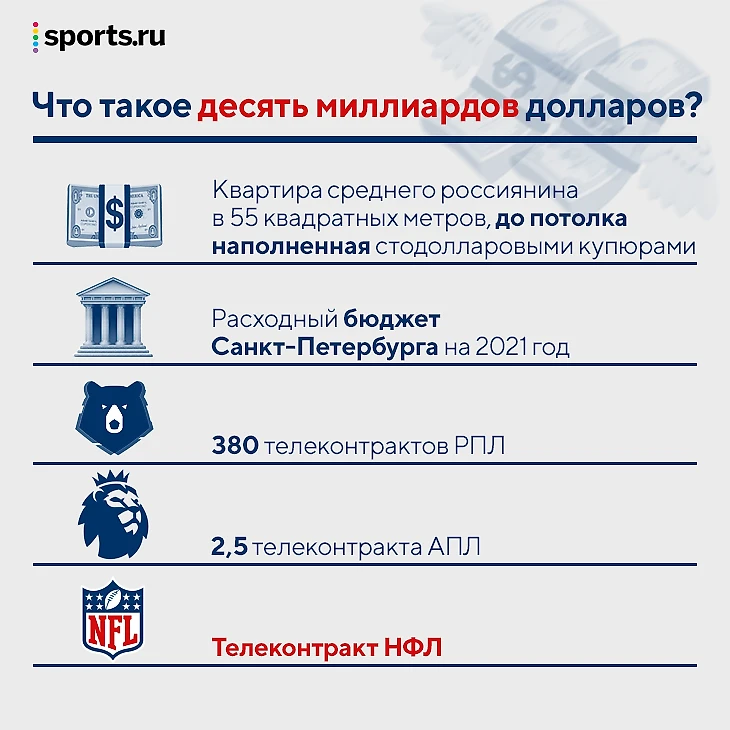 💰💰💰 105 млрд долларов получит НФЛ за медиаправа. Нет, мы не ошиблись, 105 миллиардов