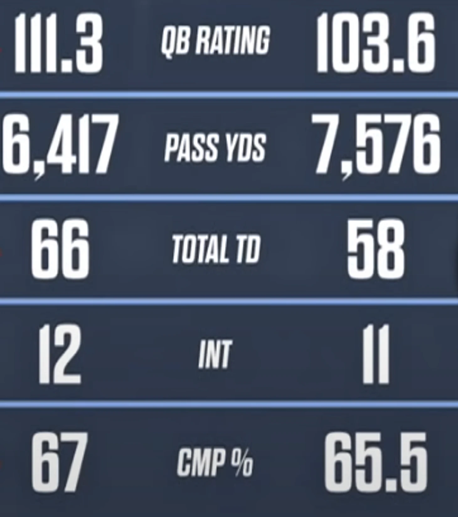Помните, как после первого сезона Таннехила в Tennessee Titans все просто считали его человеком, который вкладывает мяч в руки Деррику Хенри? Признаюсь, я и сам не был в восторге от его игры. Да и в прошлом сезоне многим он не нравился. Когда мы смотрим на Джоша Аллена, Патрика Махоумса, Аарона Роджерса и им подобных, то Таннехил значительно уступает. Но вот интересный факт. Ниже приведена статистика двух игроков за их последние 26 стартов. Угадайте, кто из них кто?