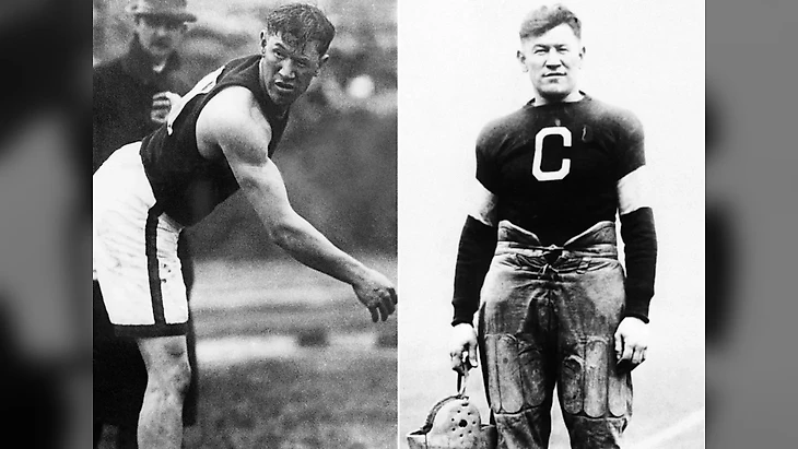 Про этого мужчину лучше читать отдельно — он был одним из основателей НФЛ. Также считался одним из лучших спортсменов начала XX века — в Стокгольме выиграл золото в пятиборье и десятиборье, а также участвовал в прыжках в длину и высоту.