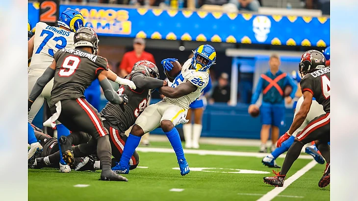 "Лос-Анджелес Рэмс"-"Тампа-Бэй Буканирс" 34:24.Квотербек хозяев Мэттью Стаффорд заработал 343 ярда и 4 тачдауна,ресивр ДеШон Джексон набрал 120 ярдов и занёс один тачдаун,кикер Мэтт Гей реализовал все 4 филд-гола.Квотербек гостей Том Брэди заработал 432 ярда и один тачдаун,ресивер Майк Эванс набрал 106 ярдов."Бараны" выиграли 3 игру подряд.