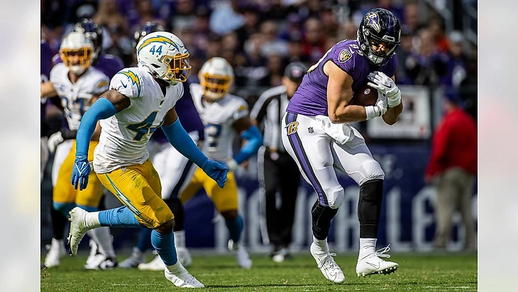 "Балтимор Рэйвенс"-"Лос-Анджелес Чарджерс" 34:6.Квотербек хозяев Ламар Джексон заработал 167 ярдов,один тачдаун и пропустил два перехвата.Кикер Джастин Такер реализовал 4 филд-гола.Квотербек гостей Джастин Херберт заработал 195 ярдов,один тачдаун и пропустил один перехват."Вороны" выиграли 5 игру подряд.