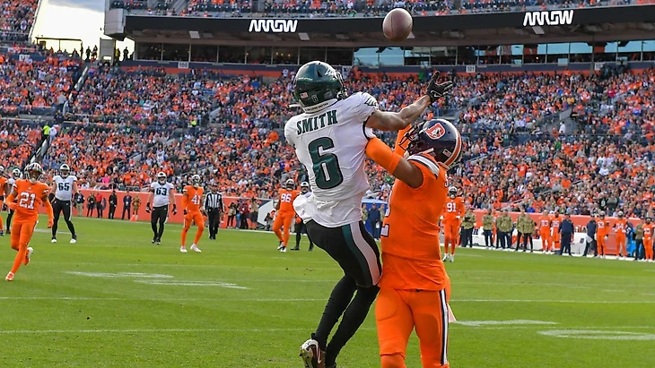 "Денвер Бронкос"-"Филадельфия Иглз" 13:30.Квотербек гостей Джейлен Хартс заработал 178 ярдов,два тачдауна и пропустил один перехват.Его визави Тедди Бриджуотер имеет в активе 226 ярдов.