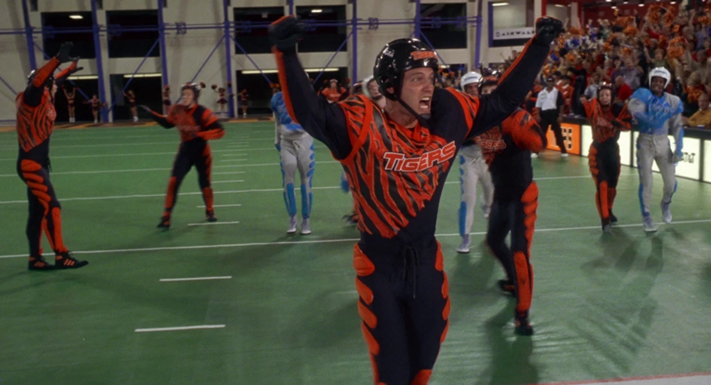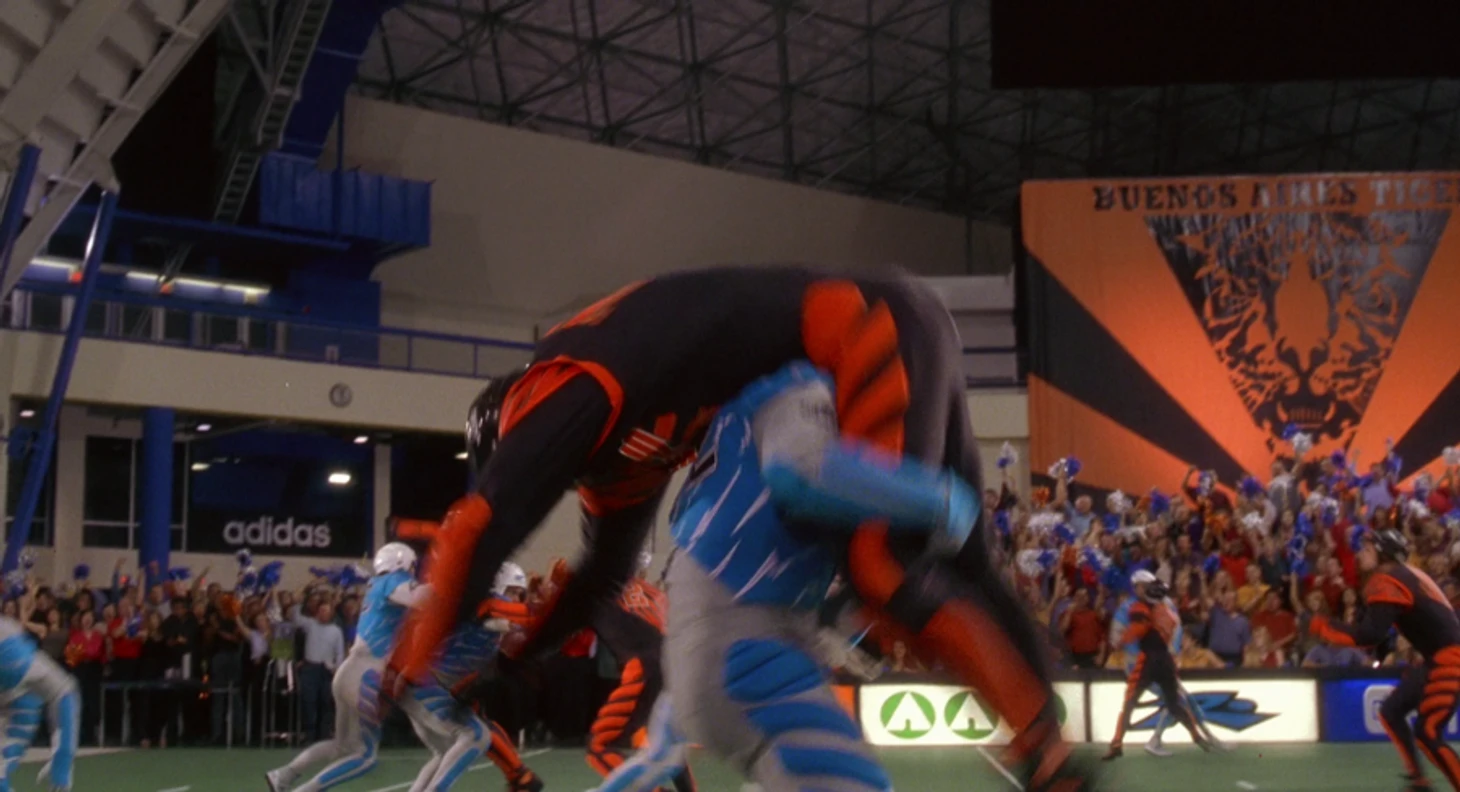 Во-первых, определимся с событиями. Главный герой Джон Рико (Каспер Ван Дин) — звезда команды «Тайгерс», которые играют в черно-оранжевой форме в стиле «Бенгалс». Их соперниками выступают «Джайентс» в серебряно-голубых цветах, лидером команды является Зандер Баркалов (Патрик Малдун). В концовке игры Джонни в стиле Деррика Хенри проходит все поле с парочкой мощных стифф-армов и уходит от захвата Зандера невероятным акробатическим прыжком в духе Джерома Симпсона (который сделал переднее сальто через лайнбекера «Аризоны» в сезоне-2011 прямиком в тачдаун).