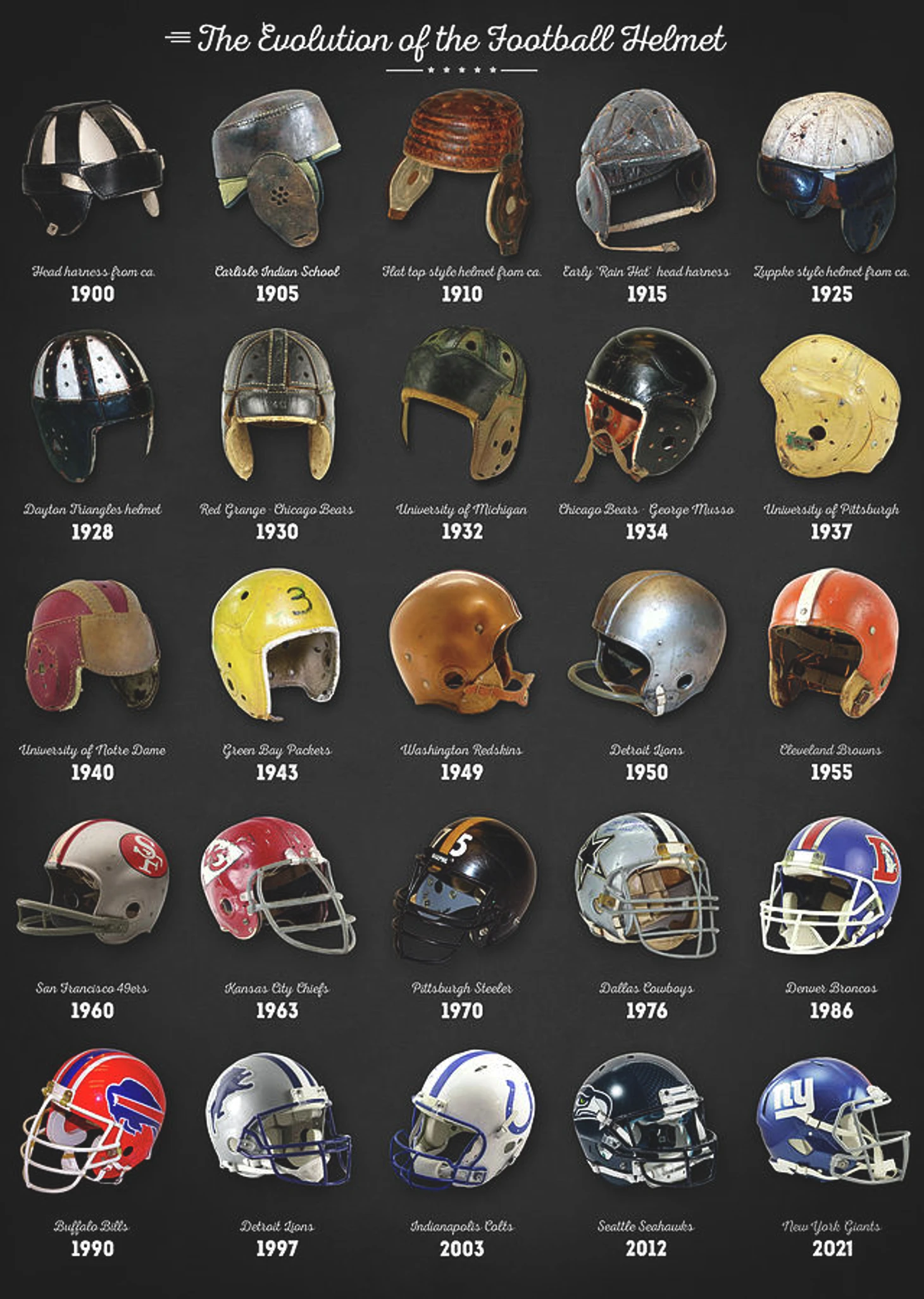 Ни один элемент защитного снаряжения не претерпел за последнее десятилетие такой трансформации, как шлем. Благодаря сочетанию технологических достижений, инвестиций НФЛ и открытого рынка для развития шлемы быстро развиваются – и на горизонте появляется все больше инноваций.