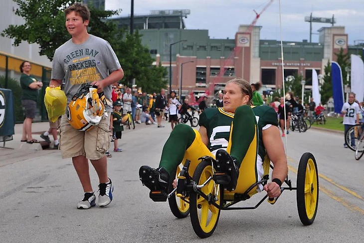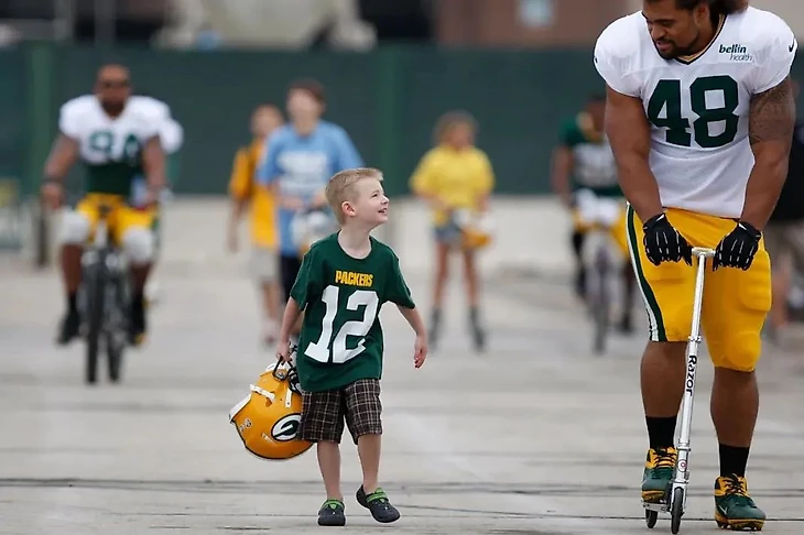 Без преувеличений. Болельщикам Грин Бэй Пэкерз принадлежит наиболее узнаваемая традиция тренинг кэмпов межсезонья. Каждый год игроки Пэкерз катаются на детских велосипедах к месту тренировки и обратно. Каждое лето, с открытием тренировочного лагеря, сотни детей ежедневно выстраиваются на улице, ожидая игроков, чтобы попросить футболистов взять свой велосипед и прокатится на нем. В более ранние времена дети взамен велосипеда получали игровой шлем, который несли к месту практики