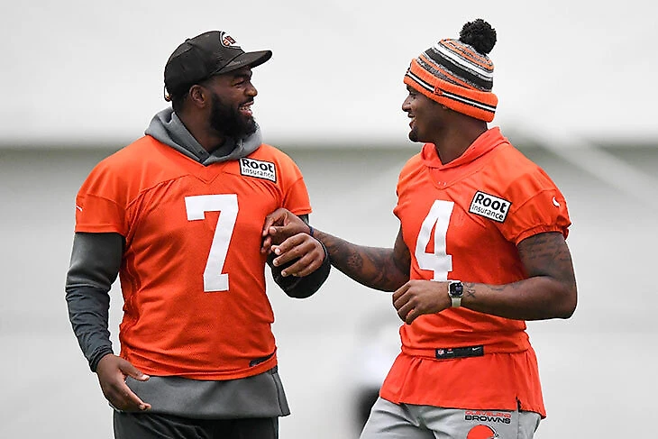 Вообще Дешон Уотсон, но пока Джакоби Бриссет. Решив, что Мейфилд нащупал свой игровой потолок, руководство «Браунс» обменяло из «Хьюстон Тексанс» опального квотербека Дешона Уотсона. В его таланте сомневаться не приходиться, но парень последний раз играл в регулярке НФЛ в 2020 году, а всё прошедшее межсезонье разбирался с обвинениями в сексуальных домогательствах. Первые 11 туров Уотсон пропустит из-за дисквалификации, а в это время подменять его будет Джакоби Бриссет. Бриссет — качественный дублёр со всеми плюсами и минусами этого определения.