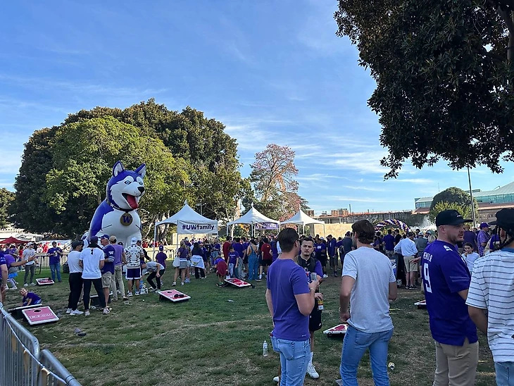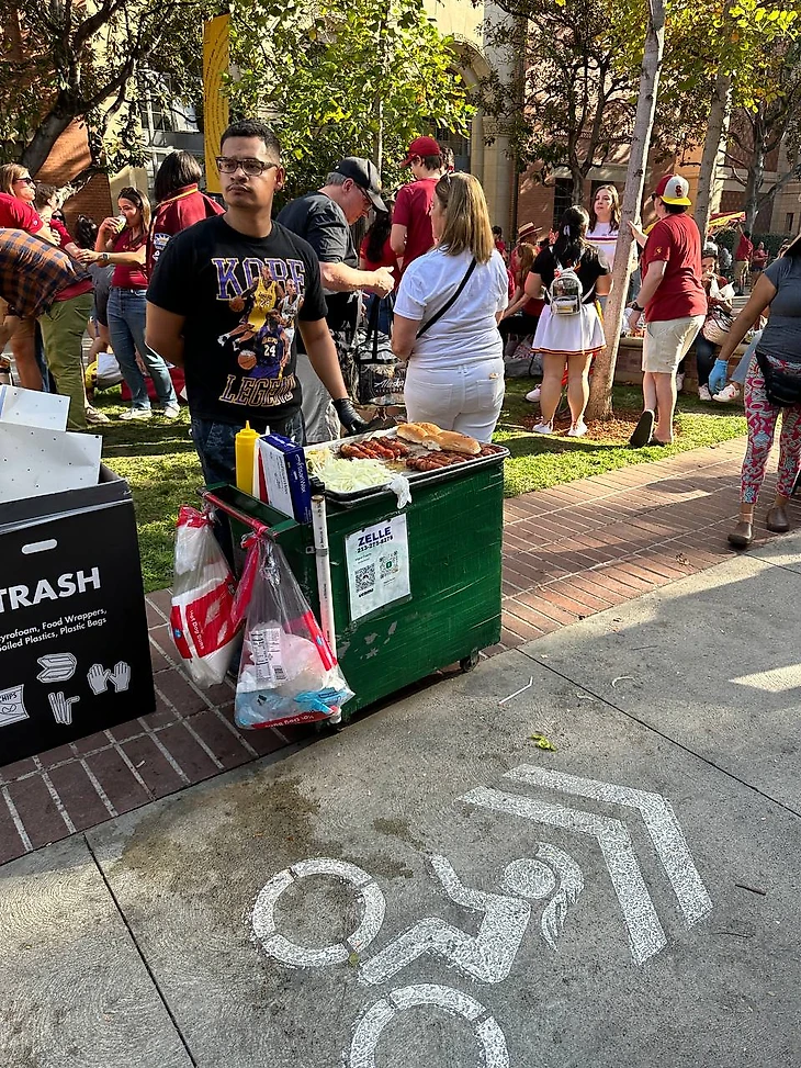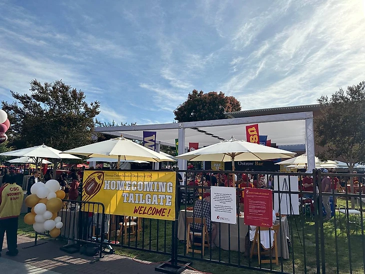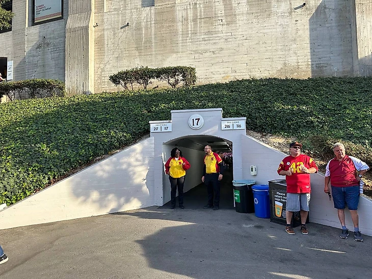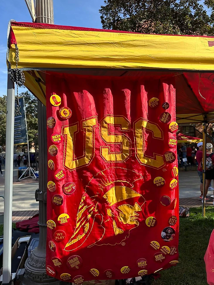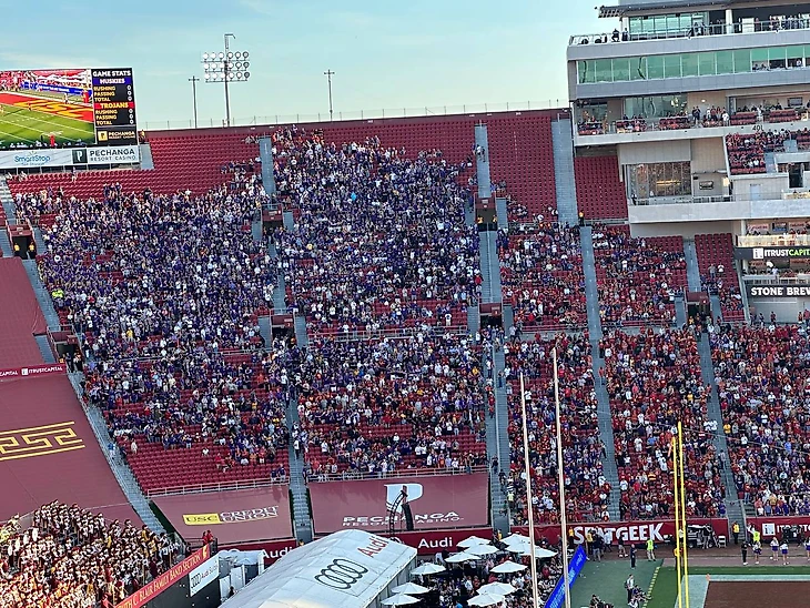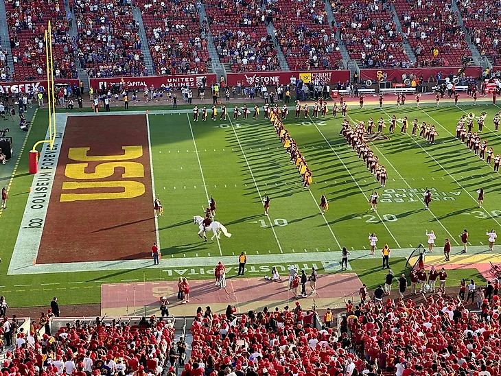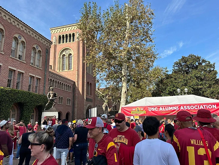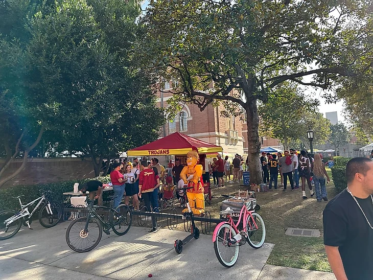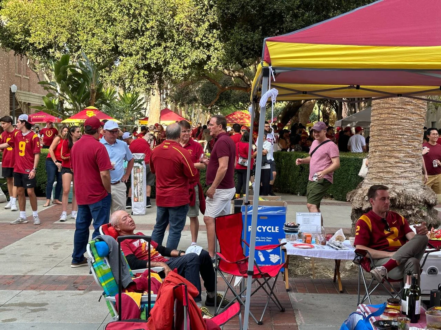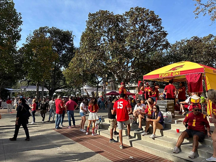 Стадион, на котором играет USC, видимо, в силу возраста (в этом году празднует 100-летний юбилей) отличается от большинства других американских стадионов отсутствием парковочных полей, на которых обычно происходит предматчевый тейлгейт. Зато вплотную к стадиону примыкает кампус самого университета с многочисленными лужайками, площадями и парковками — они и отдаются под шатры болельщиков и выпускников.