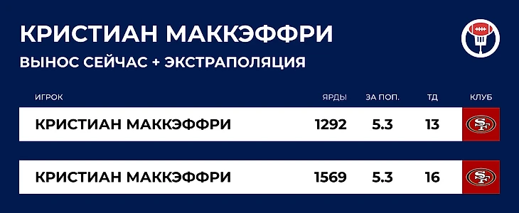 Может быть, именно в таком непонятном сезоне стоит ждать неожиданной развязки? Сегодня мы, вооружившись цифрами и табличками, оценим шансы раннинбека «Сан-Франциско» Кристиана Маккэффри и ресивера «Майами» Тайрика Хилла бросить вызов обыденности. Или даже познакомить вас с ними, если вы плохо представляете, что это вообще за люди.