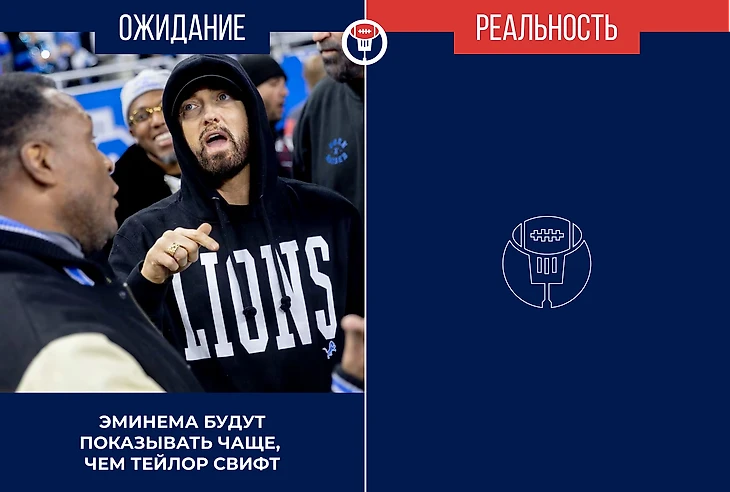 Эминем уже стал активным участником плей-офф, записав обращение к квотербеку «Рэмс» Мэттью Стэффорду перед встречей раунда уайлд-кард и появившись на трибунах стадиона «Форд Филд». НФЛ давно критикуют за повышенное внимание к Тейлор Свифт, но сейчас у лиги есть возможность сыграть на статусе другого селебрити. Если рэпера вновь ждёт домашняя обстановка «Форд Филд», то поп-диве придётся пробивать выезд на стадион «Хаймарк» и наслаждаться обществом Bills Mafia. Учитывая, что Тейлор везде сопровождает Бриттани Махоумс, боюсь, режиссёрам трансляции будет сложно построить кадр вип-ложи так, чтобы в него не попал ни один средний палец, демонстрируемый каким-нибудь болельщиком «Биллс».