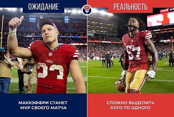 Стоит также назвать лайнбекера «Фотинайнерс» Дре Гринлоу, сделавшего два перехвата, включая решающий в концовке встречи, а также Брока Парди — на его счету победный драйв в игре + несколько серьёзных клатчевых бросков по ходу матча.