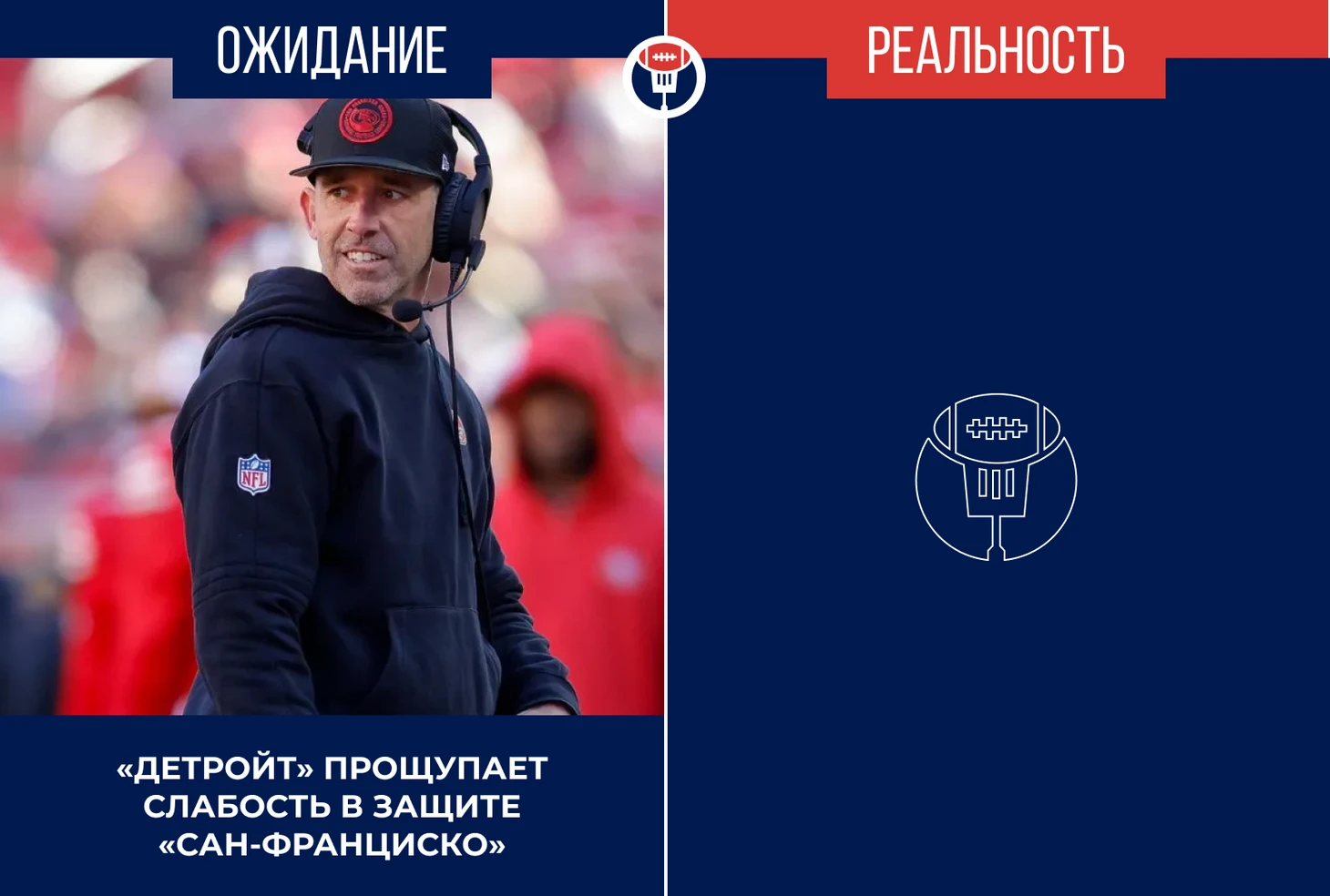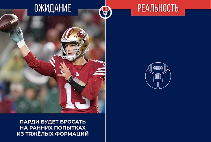 С точки зрения пасовой защиты «Сан-Франциско» также стилистически удобный соперник для нападения «Детройта». «Фотинайнерс» играют зонное прикрытие в 66.4% случаев, а Джаред Гофф хорош именно в бросках в середину поля в междузонье, где ресивер Амон-Ра Сент-Браун и тайт-энд Сэм Лапорта освобождаются на маршрутах «аут» или «ин». Постоянная угроза выноса и розыгрыши плей-экшн помогут держать на коротком поводке лайнбекера хозяев поля Фреда Уорнера, который очень хорош при оттяжке назад.