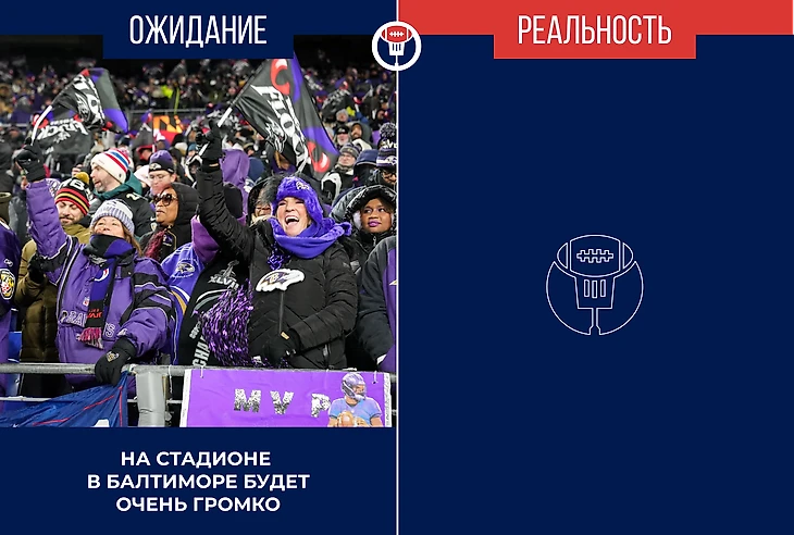 Стадион «M&T Бэнк» — один из самых громких в нынешнем сезоне. Патрика Махоумса и «Чифс» ждут 120 децибел постоянного ора. Все футболисты «Рейвенс» отметили, что в матче дивизионного раунда арена гремела как никогда, а «Тексанс» под влиянием шума совершили 7 нарушений — 5 фальстартов, задержку игры и вторжение.
