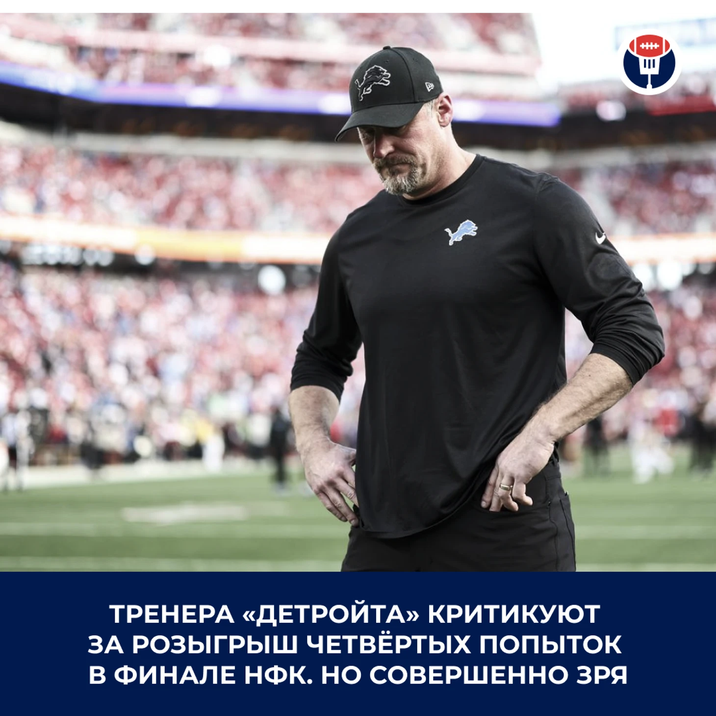 Одной из главных причин поражения «Детройта» в финале конференции против «Сан-Франциско» болельщики назвали решение тренера Дэна Кэмпбелла дважды разыграть 4-ю попытку на 30-ярдовой линии соперника. Оба раза «Лайонс» теряли владение.