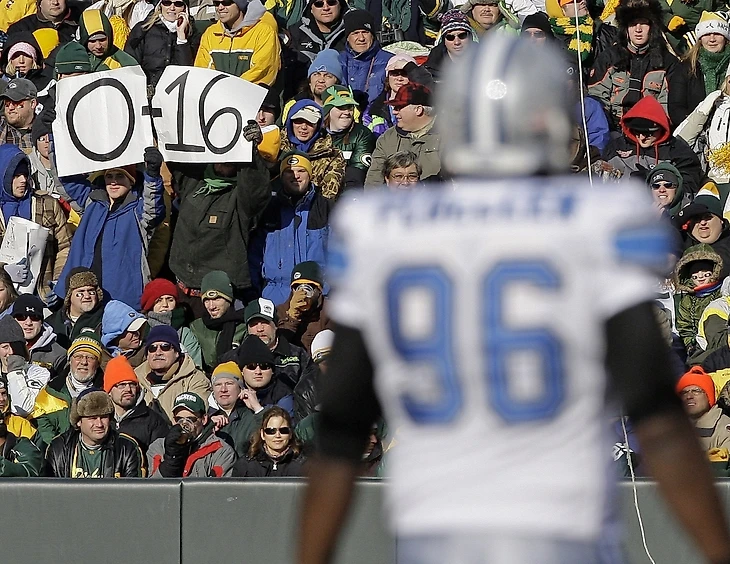С 2001-го по 2008-й включительно «Детройт Лайонс» выиграли всего 27% матчей, одержав 31 победу при 84 поражениях. Это самый лузерский 8-летний период для любой команды за всю историю НФЛ. «Львы» не то, что в плей-офф не выходили, не было ни одного сезона с положительным балансом побед и поражений.