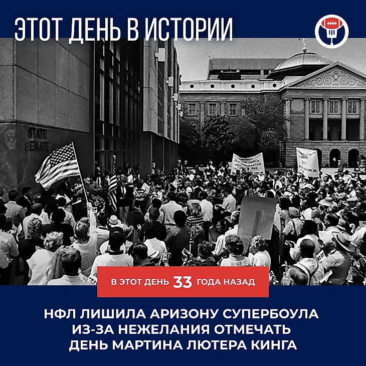 Этот день в истории. У Аризоны отобрали Супербоул из-за нежелания отмечать День Мартина Лютера Кинга