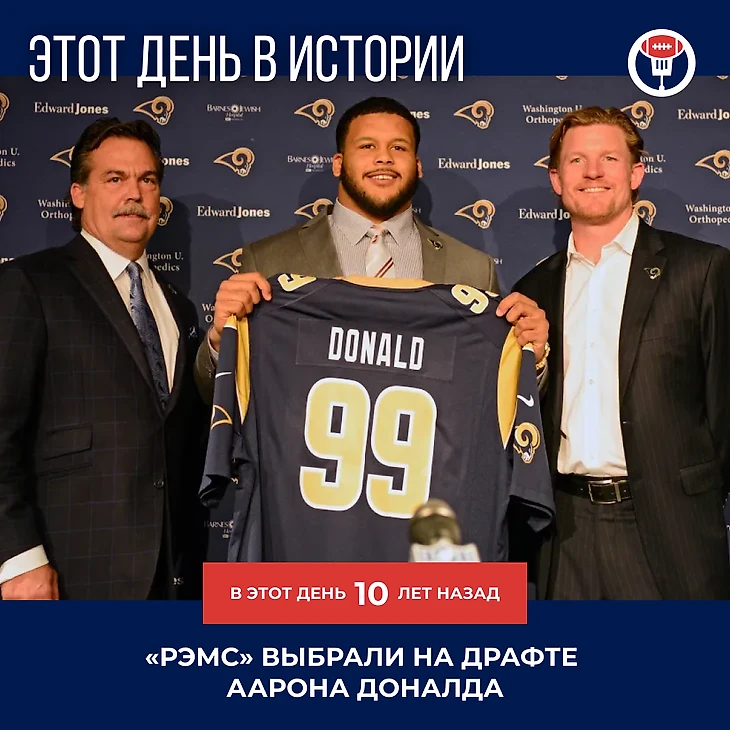 8 мая 2014 года «Сент-Луис Рэмс» под 13-м номером на драфте выбрали будущего члена Зала славы Аарона Доналда 🐏