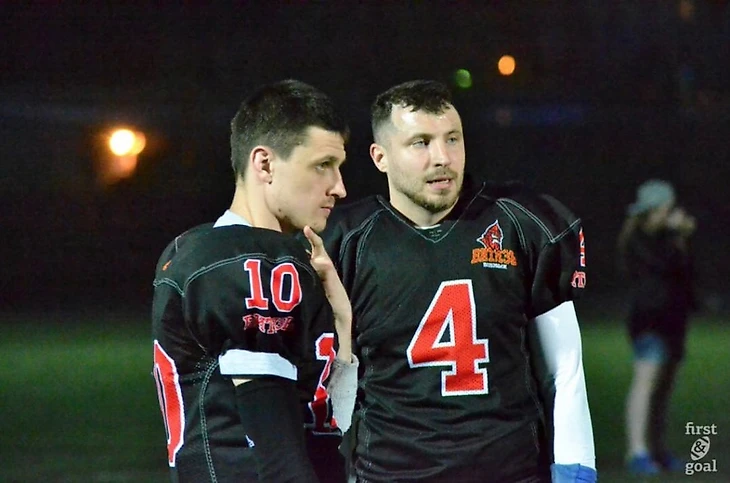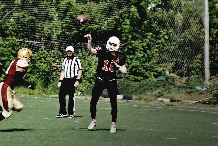 Да. Ваня Головешкин был основным квотербэком и тогда ещё к ним присоединился Егор Попов. Оба были поопытнее меня. Ваня на ногах бегал очень здорово. Попов плюс-минус что-то понимал в игре нападения, мог читать. На предсезонке я и Кирилл Святкин боролись за позицию третьего квотербэка. В итоге Попов не стал играть за нас и Ваня стал основным, потому что он знал систему, которую проповедовал Алексей Григорьевич Геец. Ну и я не продемонстрировал такой пасовой игры, чтобы можно было на меня рассчитывать.