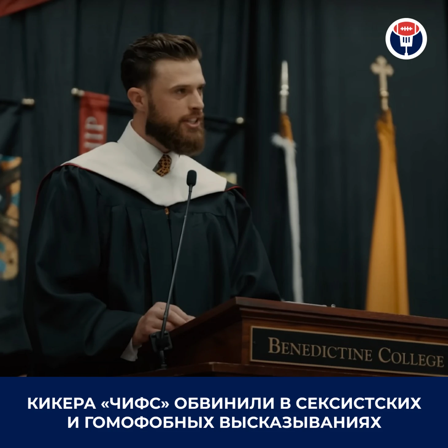 Трёхкратный чемпион Супербоула, кикер «Канзас-Сити Чифс» Харрисон Баткер был раскритикован общественностью после выступления перед выпускниками Бенедиктинского колледжа.
