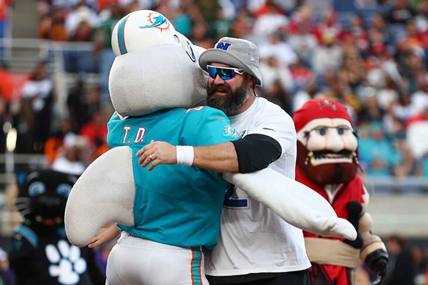 Келси долгое время был известной персоной только среди болельщиков «Иглс» (вполне нормальное явление для представителей такой важной и такой невидимой позиции как линейный нападения), но потом получил медийность благодаря выступлению на чемпионском параде, подкасту с младшим братом (а это, знаете ли, бойфренд Тейлор Свифт) и имба-розыгрышу Tush Push, когда квотербека как знамя несут вперед, чтобы добрать скромные пару ярдов.