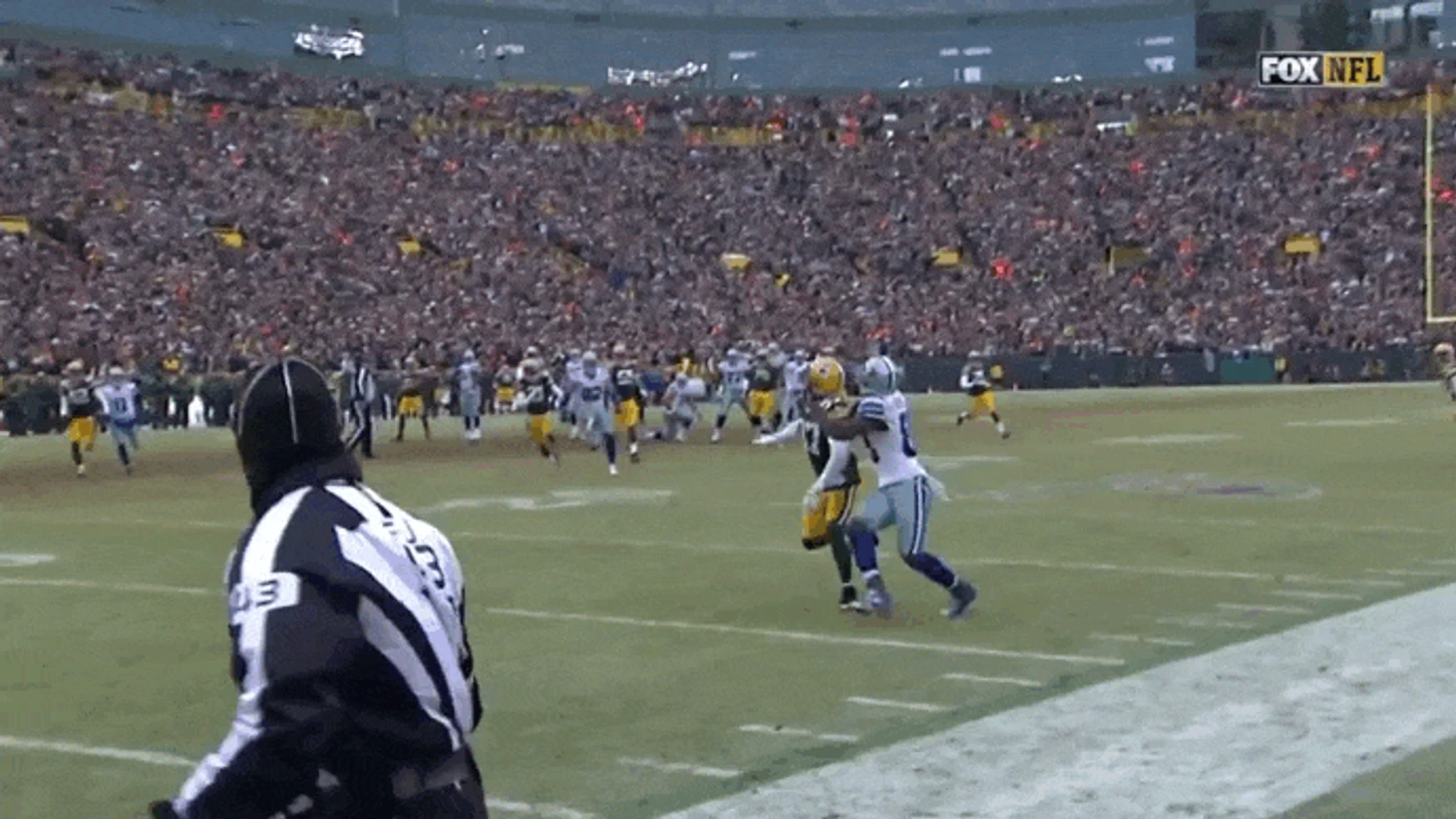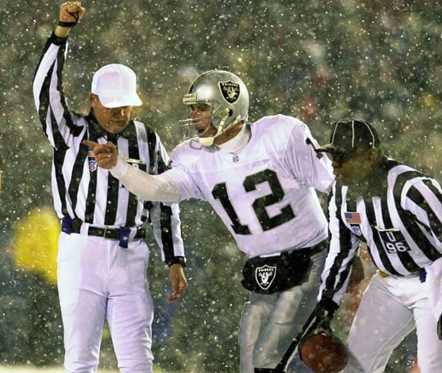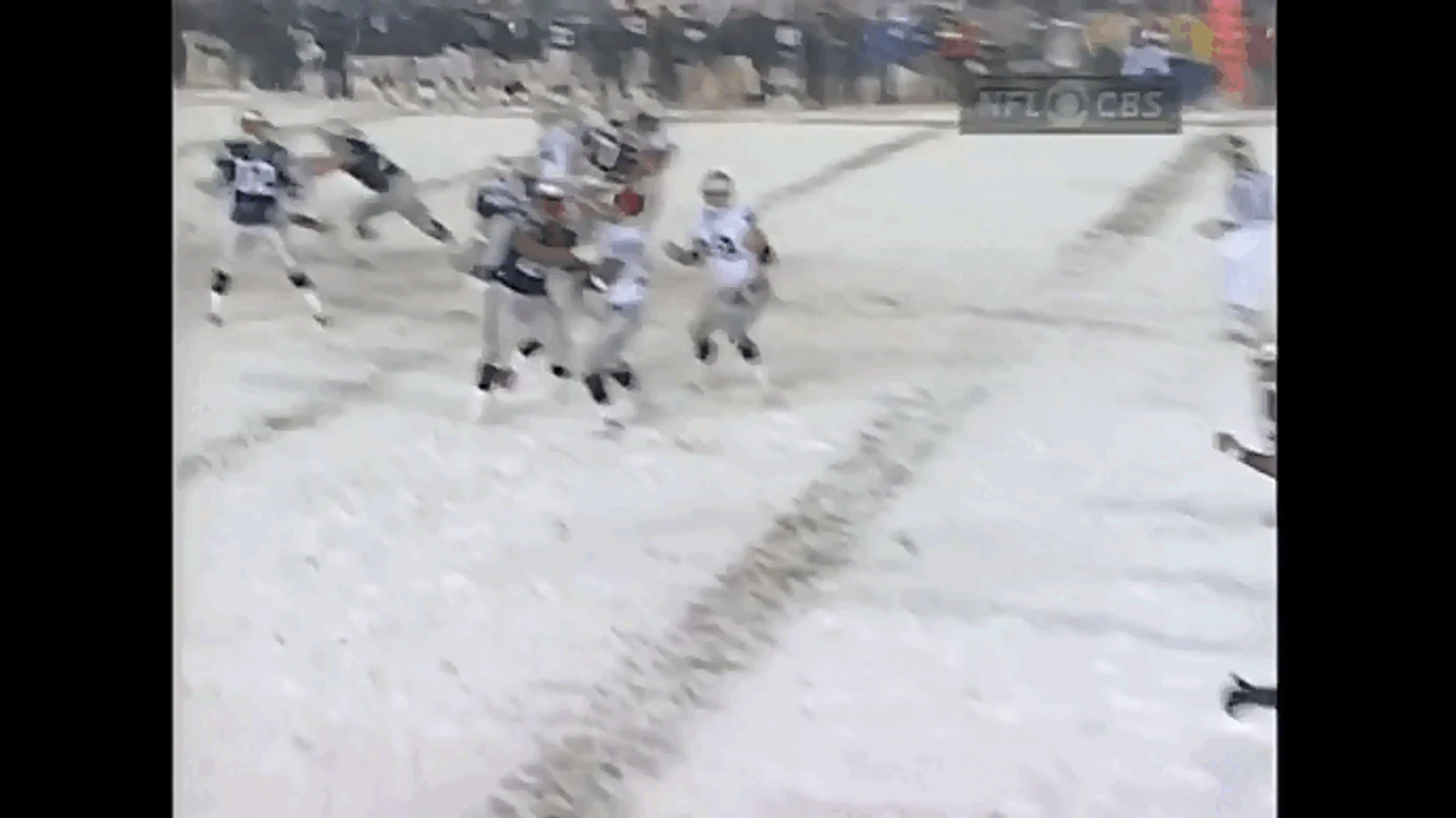 Видя, как судьи показывают в сторону зачётки «Нью-Ингленда», за 1:43 до конца матча игроки «Окленда» убегают к своей бровке, начиная праздновать то ли победу, то ли конец своего пребывания в этой забытой Богом ледяной пустоши.