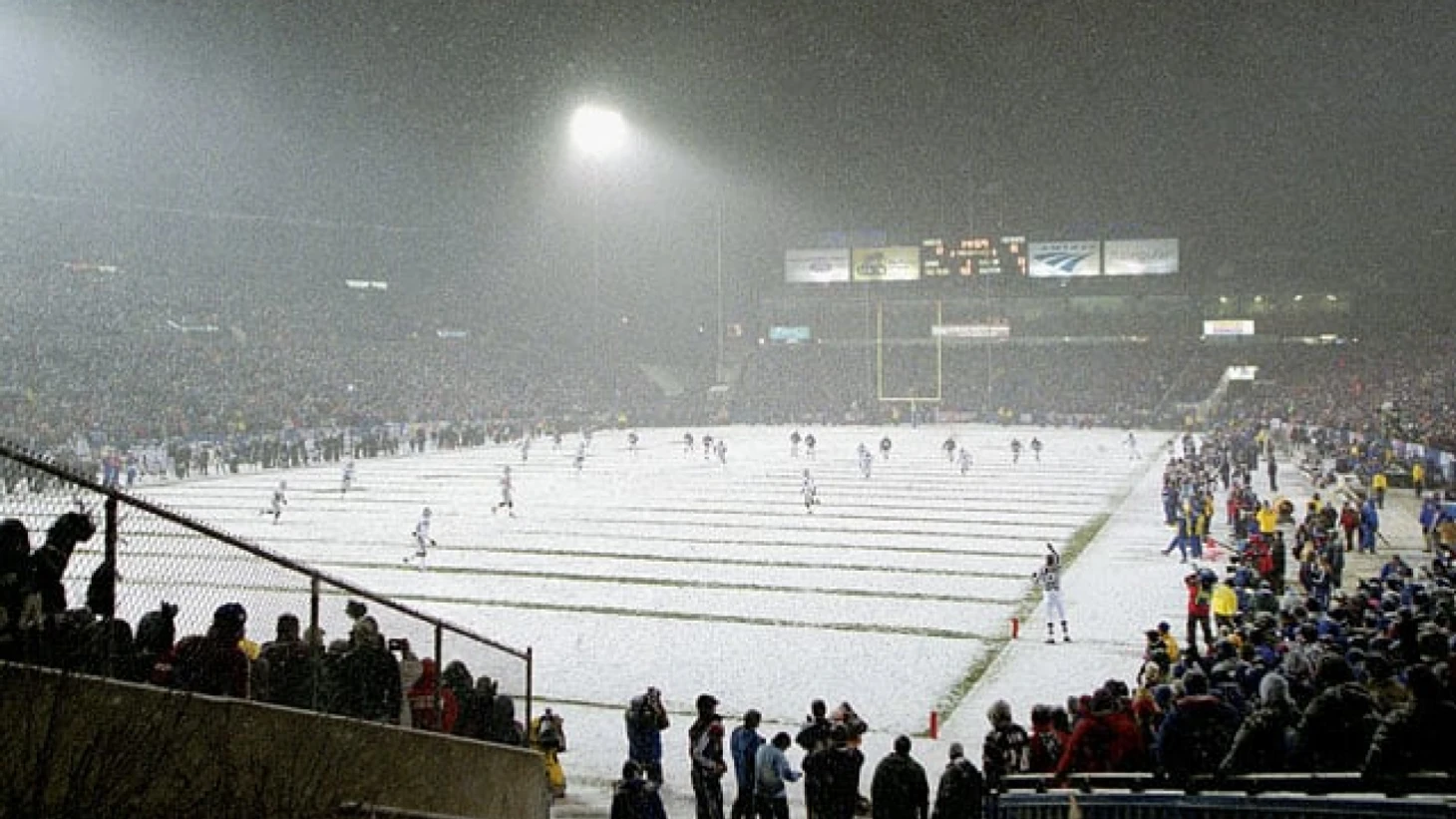 Дело в том, что если в день игры погода что-то и шептала, то слова эти были явно непечатными. Циклон, который сформировался на юго-востоке Штатов утром, перед игрой начал постепенно двигаться в направлении Бостона. К шести часам вечера на окраине Массачусетса начали появляться первые снежинки, а к 20:00 снегопад уже вовсю валил прямо над «Фоксборо Стэдиум», где как раз проходила игра дивизионального раунда АФК. Буран не будет стихать до 10 часов вечера, окончательно прекратившись только уже после полуночи, а лёгкий бриз со скоростью в 5 м/с хоть и не срывал крыши у домов, но определенный антураж точно создавал.