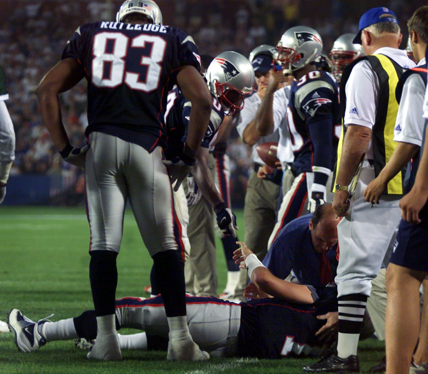 23 сентября 2001-го года. «Нью-Ингленд Пэтриотс», ведомые 3-кратным пробоулером Дрю Блэдсо, лидируют в матче со своими оппонентами по дивизиону «Нью-Йорк Джетс». За 1:01 до конца первой половины, при счёте 3-0 в пользу команды Беличека, мяч контролируют именно «Реактивные», но ди-энд «Пэтс» Энтони Плезант форсирует фамбл во время своего сэка на Винни Тэставердэ, который подбирает тиммейт Тони. К большому сожалению для «Патриотов», после пересмотра момента судьи меняют свое решение, обосновывая это молодым положением в Конституции НФЛ.