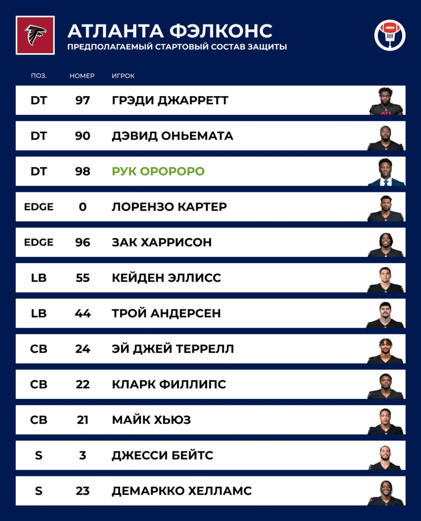 🦶 Слабость: Ди-тэклы и о-лайн. Самое громкое имя в центре линии защиты — Фатукаси, но и у него не сложилось в «Джексонвилле». Там просто посредственный набор игроков. В линии нападения есть Тансил и Мейсон, но вот их одноклубники Кеньон Грин (пропустил весь прошлый сезон, а в дебютном играл слабо) и Тайтус Хауэрд выглядят неубедительно.