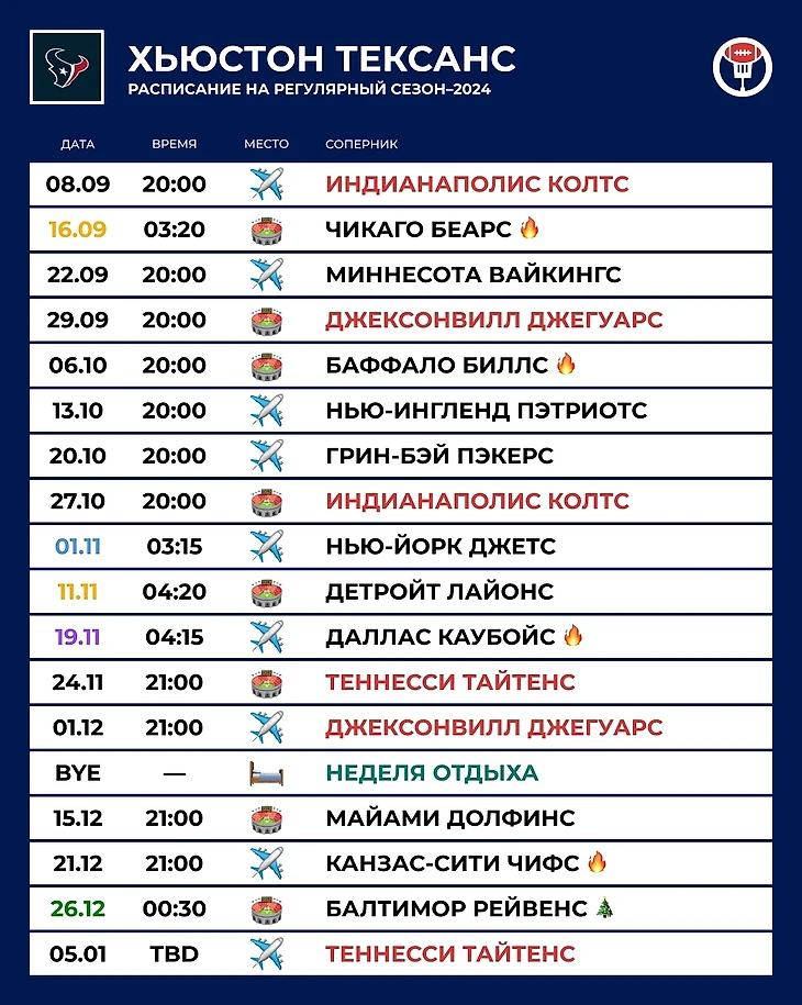 😌 Амбиции: Превзойдя самые смелые ожидания в прошлом году, «Тексанс» не стали откладывать вопрос о борьбе за Супербоул на потом. Пока Страуд играет на дешёвом контракте новичка, надо бежать за титулом. Приобретения Диггса и Хантера как раз отсюда. Если мы говорим только об амбициях и составе на бумаге, то это претендент на чемпионство в АФК.