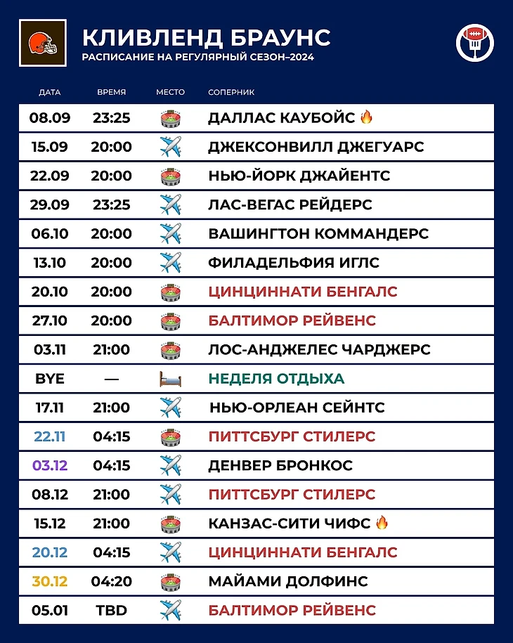 🦶 Слабость: Нападение. По эту сторону мяча, наоборот, сплошные вопросы. Огромная разница между тем, что есть на бумаге, и тем, что в реальности. Дешон Уотсон — два года травм и невнятной игры, Ник Чабб после страшной травмы колена, в корпусе ресиверов после Амари Купера не то, чтобы россыпь талантов.
