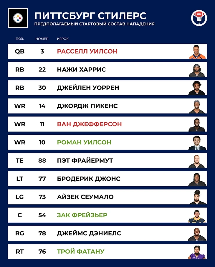 🦶 Слабость: Пасовая игра. Можно восторгаться тем, как «Питтсбург» решил вопрос с квотербеком чисто в менеджерском плане, но всё же это напоминает попытки найти алмаз в э-э... строительных отходах других команд, давайте так. В слабый о-лайн вложились на драфте, но в первый год линейные ещё обычно не готовы. Комплектом ресиверов тоже не похвастаешься.