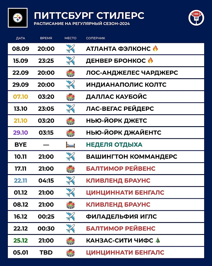 🃏 Козырь: Пас-раш. Уотт и Хайсмит — лучший дуэт пас-рашеров в лиге, а Ник Хербиг в прошлом году использовал ограниченное игровое время по максимуму. Девиз «Питтсбурга» прежний: у нас нет квотербека — и у вас не будет!