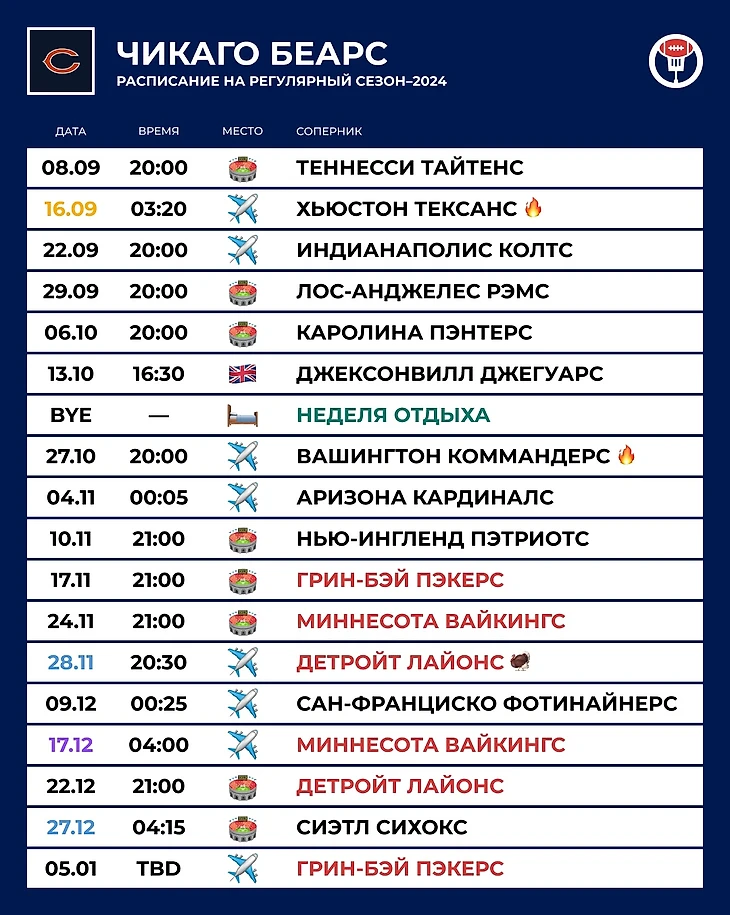 😌 Амбиции: «Беарс» как будто нащупали крепкий фундамент во второй половине прошлого сезона, и с учётом всех приобретений в нападении должны бороться за место в плей-офф.
