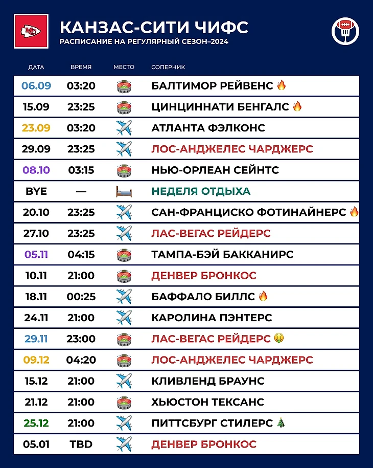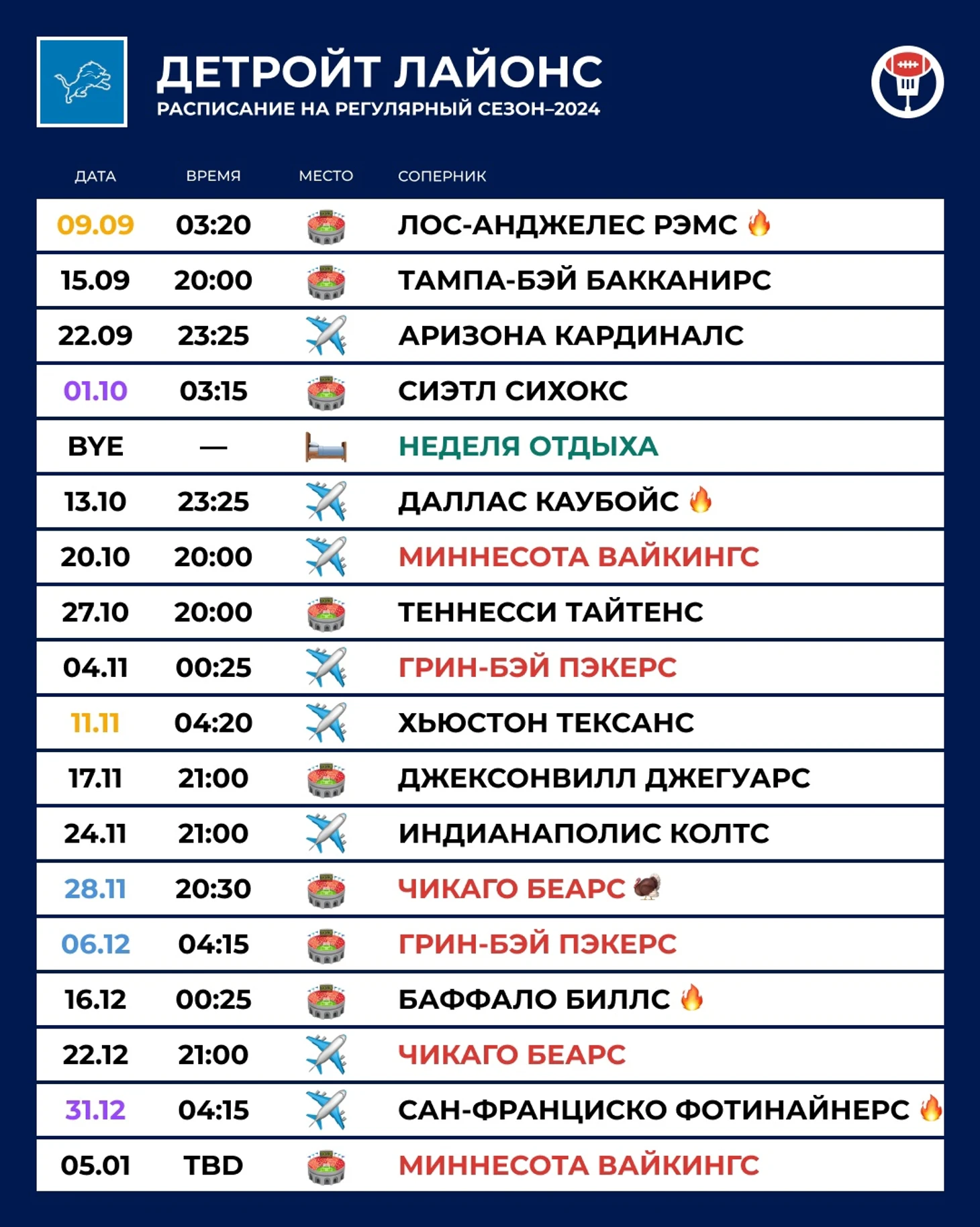 В расписании красным обозначены соперники по дивизиону, огоньком отмечены матчи, в которых присутствует дополнительная интрига, например, встреча с бывшим знаковым футболистом или тренером.